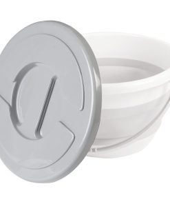 Falteimer mit Deckel und Griff. Kann sehr flach gefaltet werden und hat gefaltet eine Höhe von gerade einmal 5,5 cm. Inhalt 7,5 l.
