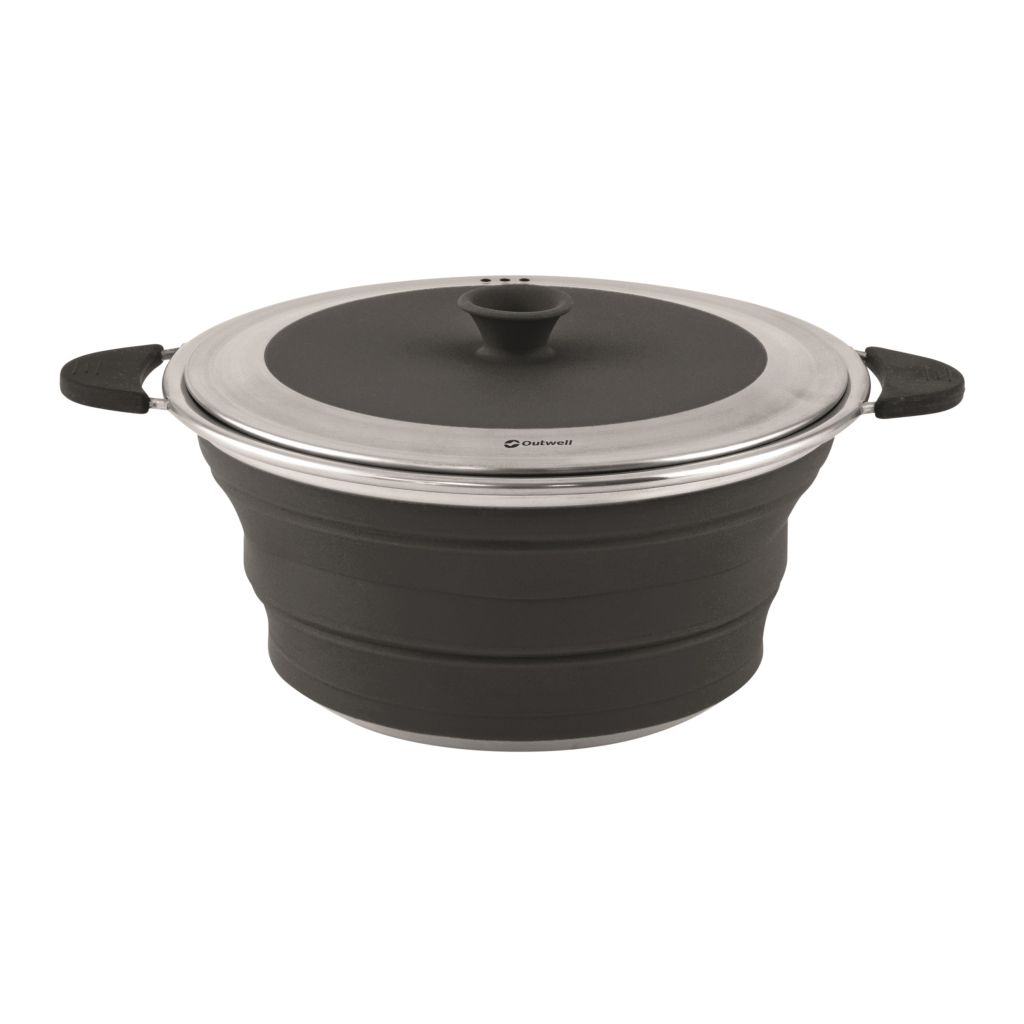 Die Collaps Kochtopfserie inklusive Deckel mit Dampfloch lässt sich nach Gebrauch vollständig zusammenfalten und eignet sich ideal für die Zubereitung heißer Speisen. Durch einen Silikoneinsatz ist er leicht auseinander- und wieder zusammenfaltbar, je nachdem, ob er gerade gebraucht oder wieder verstaut wird. Der Deckel des Topfes besteht ebenfalls aus Silikon. Kann auf direkte Hitze gestellt werden. In 2 Größen und 2 Farben.