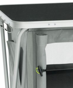 Praktische, leicht aufzubauende Schränke mit einem außenliegenden Aluminiumgestänge, das in Verbindung mit der Aluminiumauflage und den herausnehmbaren, beschichteten Einlegeböden für hervorragende Stabilität sorgt. Die Türen werden durch einfach einschiebbare Fiberglas-Rahmen geformt, eingenähte Magnete sorgen dafür, dass sich die Türen leicht schließen und öffnen lassen. Um die Schränke als offene Regale zu nutzen, können die Rahmen entnommen und die Türen aufgerollt werden. Das eingelagerte Gut wird durch in den Polyesterbezug eingearbeitete Lüftungsgitter ausreichend belüftet. Zusätzlichen Stauraum bieten seitliche Organizertaschen, die Füße sind einzeln einstellbar um Unebenheiten am Boden auszugleichen. Lieferung erfolgt inklusive einer Trage- und Aufbewahrungstasche.