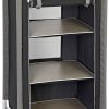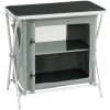 Flexibel einsetzbare Schränke mit herausnehmbaren Ablageböden und oben aufgesetzter Ablageplatte. Das außenliegende, besonders leichte Alu-Gestell gewährleistet schnellen Auf- und Abbau. Die Füße sind höhenverstellbar um Unebenheiten im Boden problemlos auszugleichen. Der abnehm- und waschbare Bezug ist mit seitlichen Utensilientaschen und Fliegengaze zur Entlüftung ausgestattet. Die Schränke sind in den Farben grau und schwarz erhältlich. Lieferung erfolgt inkl. einer praktischen, strapazierfähigen Trage- und Aufbewahrungstasche.