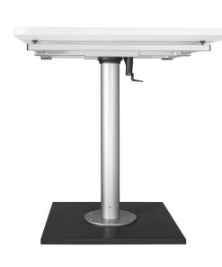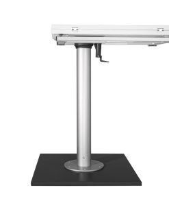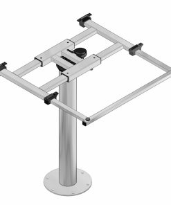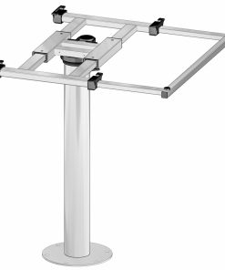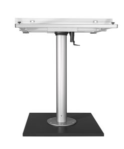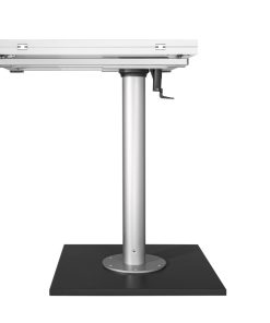 Feste Tischsäule mit Verschiebung, 360°-Verdrehung und Kulissenauszug zur Verdoppelung der Tischplattengröße. Höhe bis Unterkante Tischplatte 700 mm. Längsverschiebung 30 cm. Kulissenauszug 21,5 cm. Tischplatte und Montageuntergrund sind nicht im Lieferumfang enthalten.