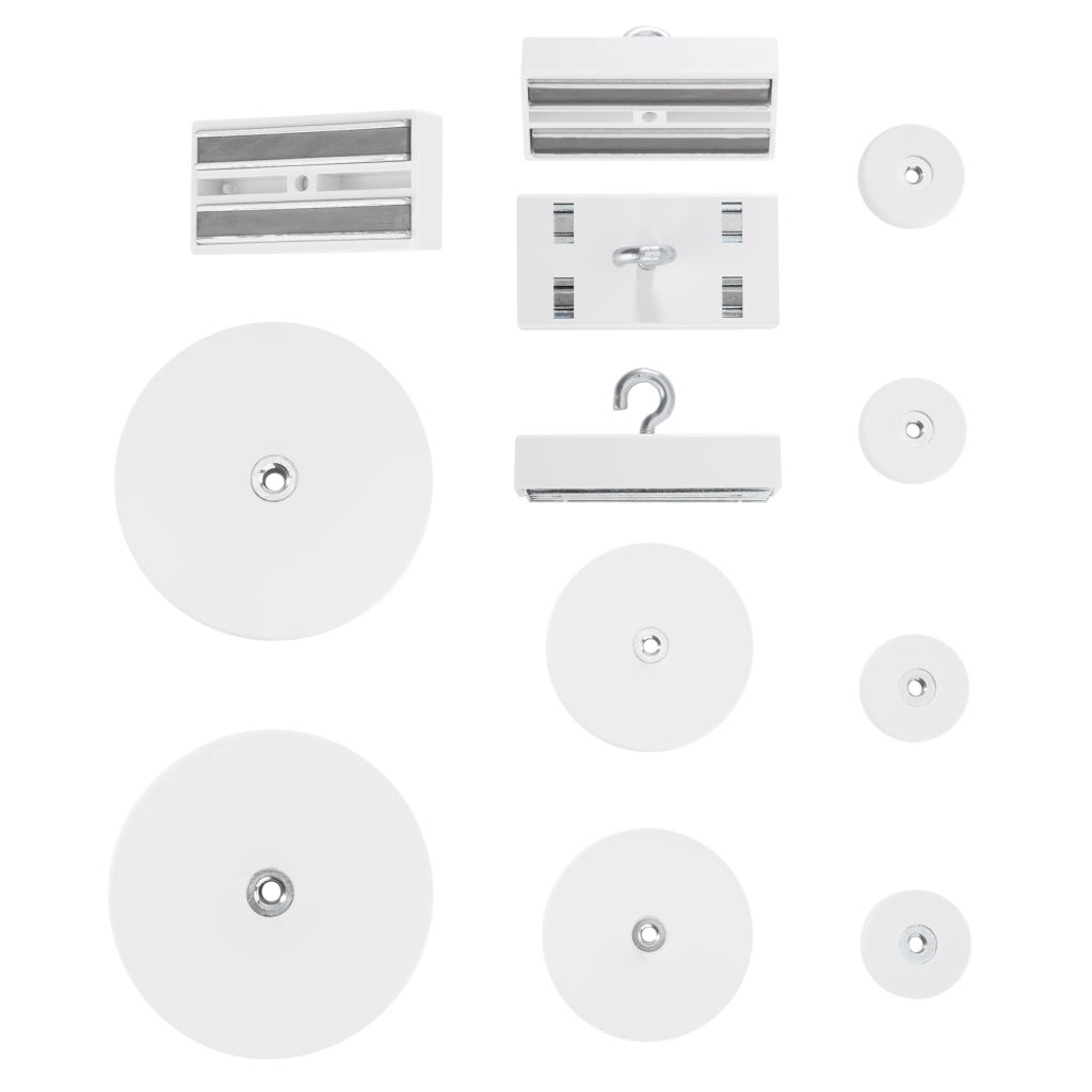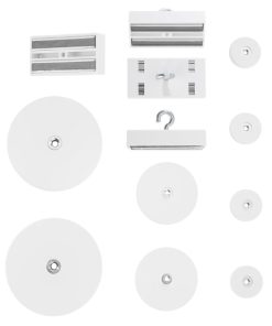 Das Zubehör besteht aus praktischen Utensilien wie z. B. selbstklebenden Metallband, selbstklebende Metallscheiben, Ösen und Haken.