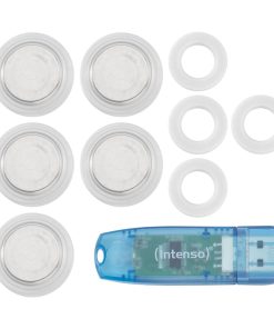 - 5 beidseitig haftende Magnete ø25 mm, im Kunststoffgehäuse, Haltekraft je 0.4kg