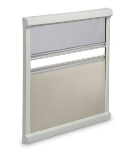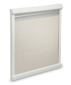 Das Frontscheibenrollo kann problemlos am Armaturenbrett montiert werden, ohne die Lüftungsschlitze zu blockieren. Die Aluminiumbeschichtung auf der Außenseite des Stoffes reduziert am Tag die Hitze und dient nachts als Kälteisolierung. Es bietet Sichtschutz im Kabinenbereich und dient so als Diebstahlschutz. Schwarze, pulverbeschichtete Kassette mit grauem oder sandfarbenem Rollo.