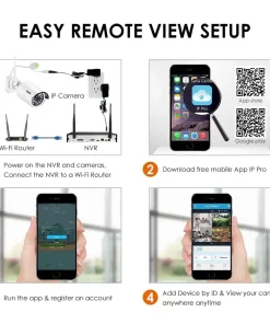 Bringen Sie einfach die Kameras in dem Bereich an den Sie überwachen möchten und schalten Sie sie ein. Sobald die Kameras mit Strom versorgt sind, werden sie sich mit dem Empfänger verbinden und der NVR wird das Signal empfangen. Sparen Sie damit Zeit und Geld für die Verlegung der Kabel.