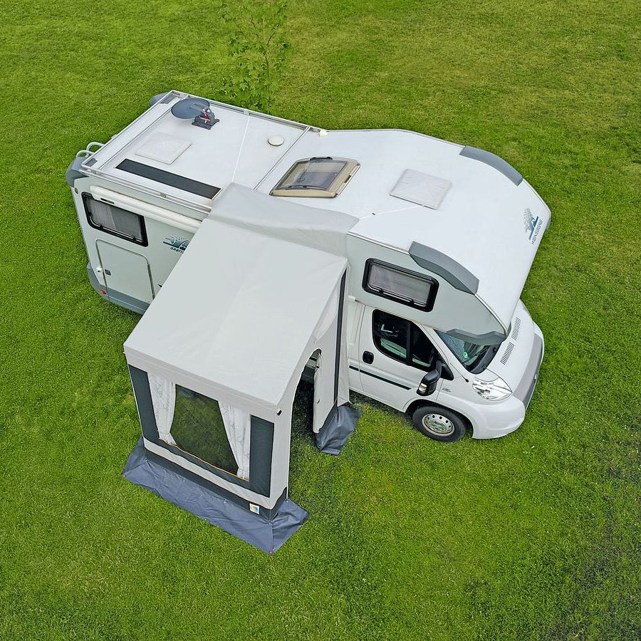 Das freistehende Ganzjahres-Reisemobilzelt ist für Reisemobile mit einer maximalen Türhöhe von 280 cm geeignet und ideal für den Wintereinsatz.