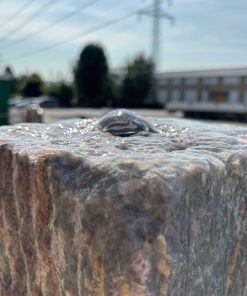 Die drei abgestuften rustikalen Naturstein-Stelen aus dem rot/grau farbigen Marmor “Salome” bilden eine schöne Gruppe, welche Ruhe und Stärke ausstrahlt. Die felsigen Stelen vereinen modernes Design mit rustikalem Stil.