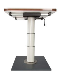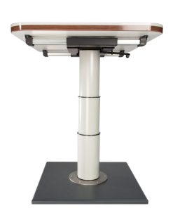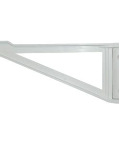 Stützfuß mit Knick in der Mitte aus Aluminium Ovalrohr (50 x 25 mm). Einrastbar in beiden Höhenstellungen mittels Schiebetaste. Gesamthöhe 67,5 cm; abgeklappte Höhe 31,5 cm.