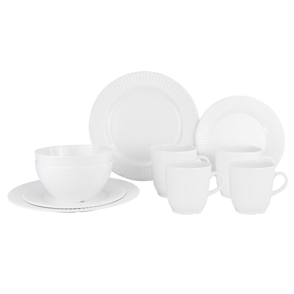 16-teiliges Geschirrset bestehend aus: 4 Ess-, 4 Desserttellern, 4 Müslischalen und 4 Henkelbecher.