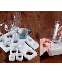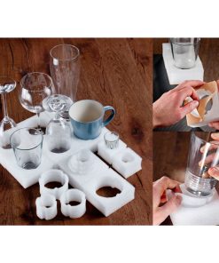 Das System passt sich Ihrem Schrank und Ihren Gläsern an. Gläser, Tassen und Becher von ø 30 bis ø 80 mm werden sicher gehalten. Kostengünstig, individuell, selbstklebend, wasserabweisend, nach innen und außen flexibel. Die Ausgleichsstücke sind perforiert und können so optimal dem Schrank angepasst werden.