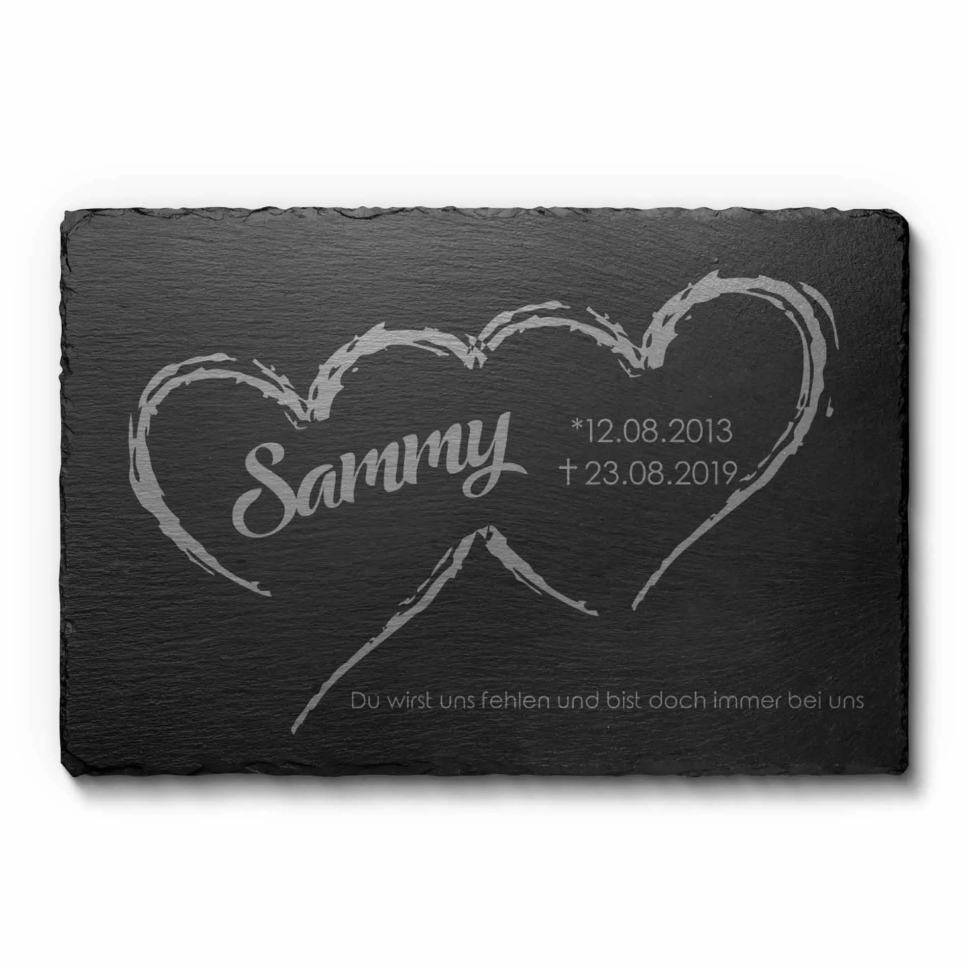 Etwas, das man tief in seinem Herzen trägt, kann man auch durch den Tod nicht verlieren. Gestalte Dir bei uns einen einzigartigen Grabstein für Hund, Katze oder einen anderen tierischen Liebling mit dem Du Dich immer wieder an wundervolle Momente mit einem Haustier zurückerinnerst. Lasse Dir einen besonderen Gedenkstein für die Ewigkeit fertigen. Auf unsere Tiergrabsteine kannst Du Dir mit einer persönlichen Widmung oder einem schönen Trauerspruch all Deine Emotionen in edles Naturschiefer gravieren lassen.