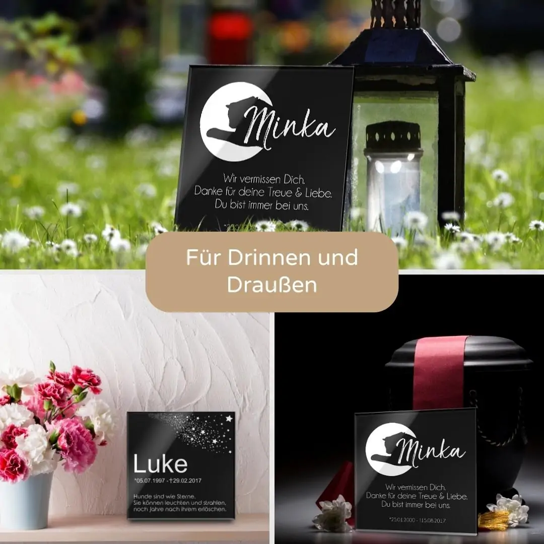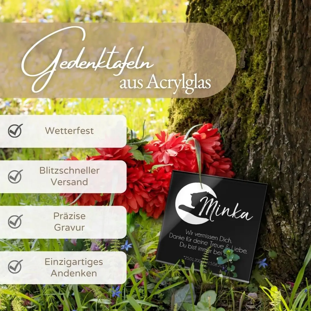 Grabstein / Gedenktafel aus Hochglanz Acrylglas 20×20 cm mit Gravur