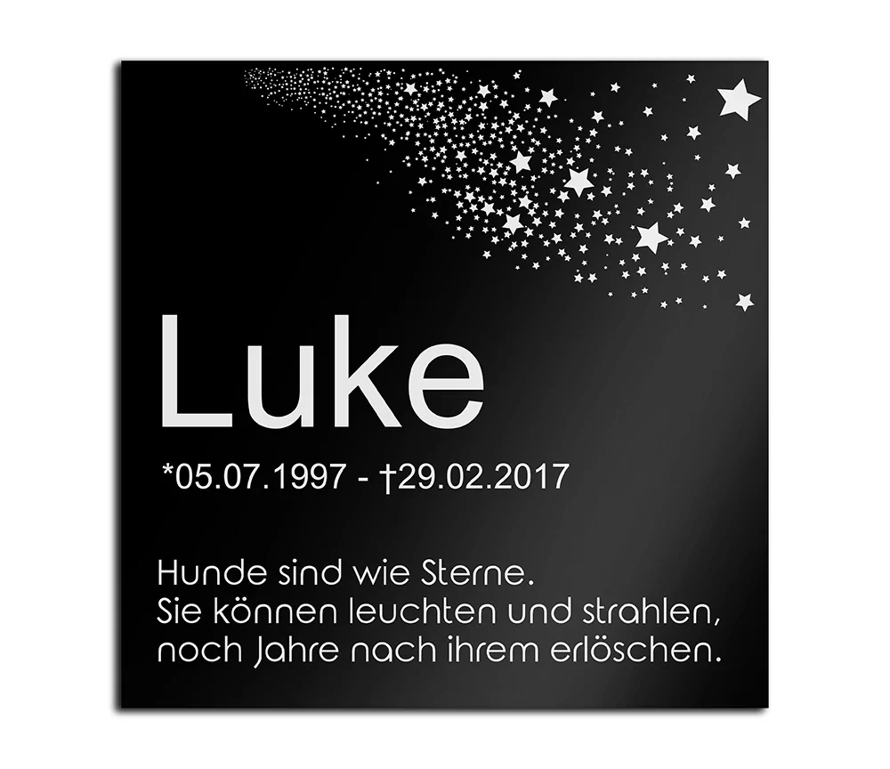 • Gedenktafel Maß: 20×20 cm / Stärke 5 mm