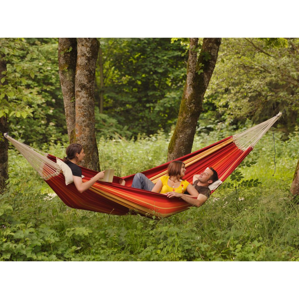 Die wahrscheinlich größte Hängematte der Welt! Gigante, die perfekte Verbindung zwischen zwei Aufhängepunkten, in der problemlos mehrere Leute bequem liegen können. Gigantisch! Aufgrund der Größe nicht mit unseren Gestellen kombinierbar.