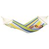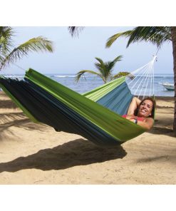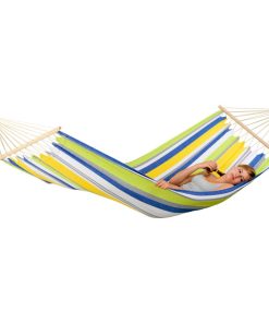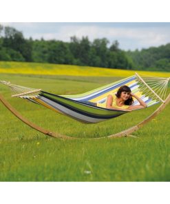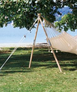 In diesem Hängesessel können Sie sanft schaukelnd wunderbar den Stress des Tages vergessen – oder erst gar nicht aufkommen lassen. Der kuschelweiche Stoff aus 85 % Baumwolle und 15 % Polyester ist in sorgfältiger Handarbeit in Brasilien gewebt und, wie alle brasilianischen Hängematten, besonders groß und bequem. Auch der kunstvoll gedrechselte Holzstab hat mit 1,10 m die richtige Länge, dass sich auch Sitzriesen bequem entspannen können. Das nur knapp 3 kg leichte Möbelstück ist überall mit einem Handgriff auf- oder weggehängt. Die dafür erforderliche Mindest-Raumhöhe ist ca. 2,20 m.