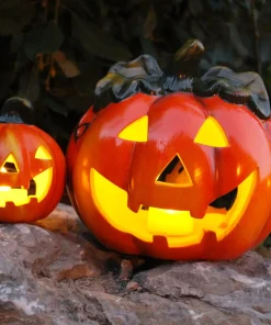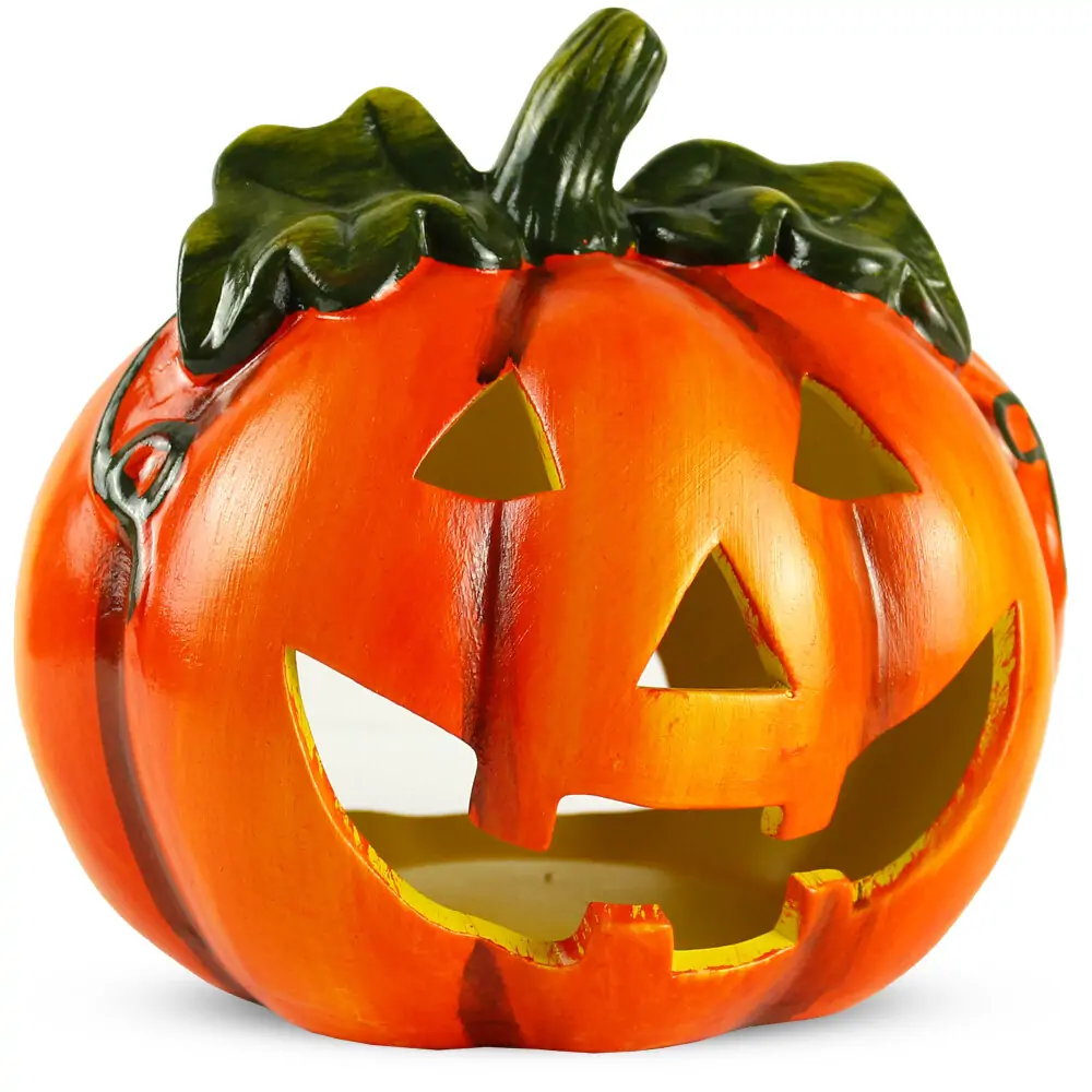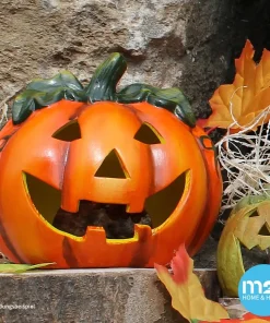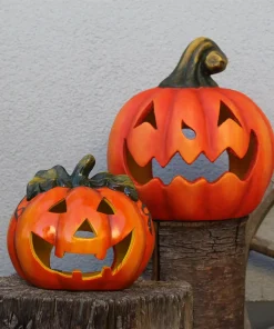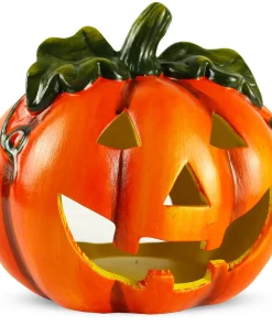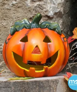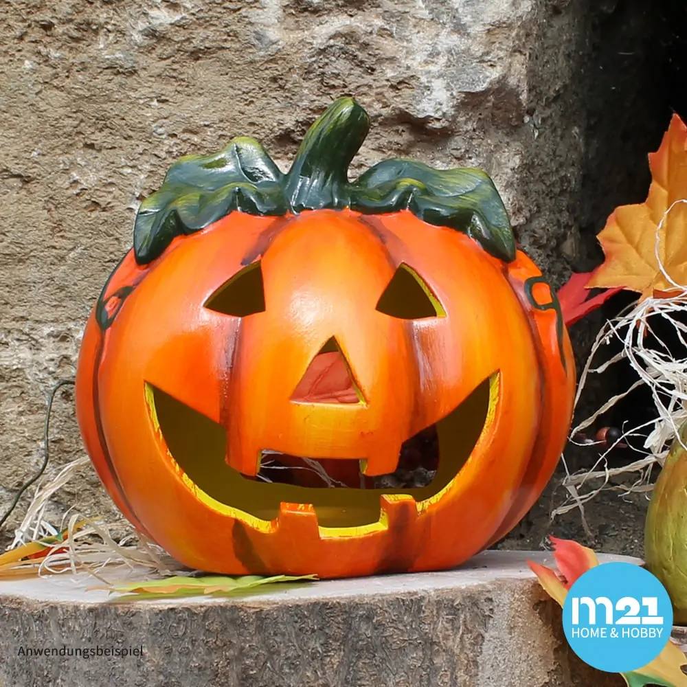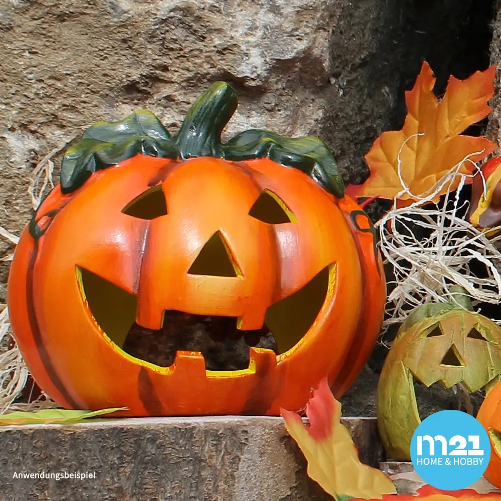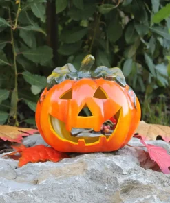 Kürbis-Laterne als Halloween-Deko LED Windlicht in 18×17 cm – Gruseliger Jack-O-Lantern Deko-Kürbis für Teelichter als Tischdeko – Teelichthalter als Herbst-Deko für innen und Draußen im Garten