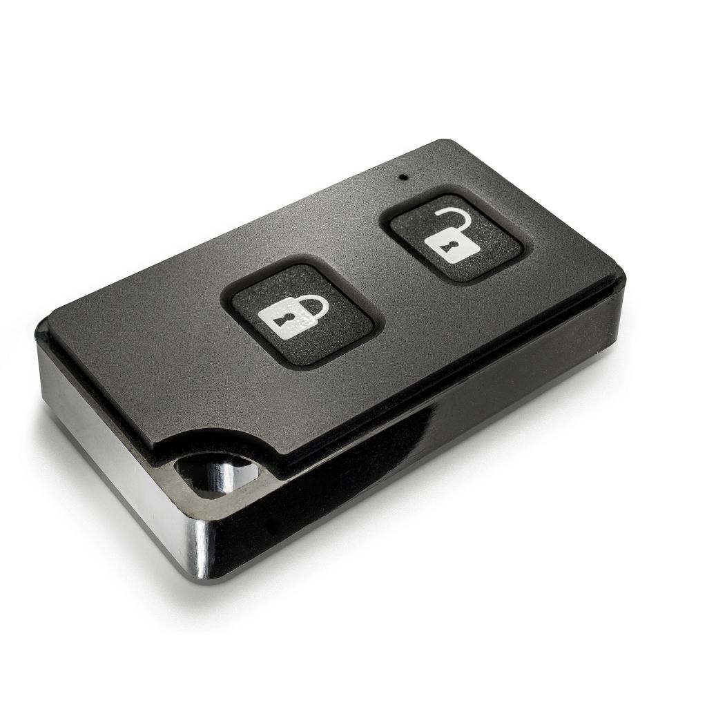 Steuert die Zentralverriegelung. Mit einem Tastendruck wird das gesamte Fahrzeug ver- bzw. entriegelt. Reichweite (freies Feld): ca. 75 m. Sendefrequenz/-leistung: 868,35 Mhz / <10 mW.