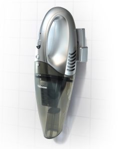 Nass- und Trocken-Krümelsauger mit ergonomischem Handgriff. Der Handstaubsauger verfügt über eine Bürste und eine Düse zum Aufnehmen von Flüssigkeiten und ist mit einer Wandhalterung ausgestattet. Der Filter lässt sich leicht reinigen.