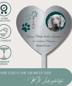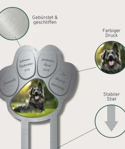 Das Besondere an unserer Grabdeko zum Einstecken ist nicht nur das hochwertige, edle Material sondern vor allem die Möglichkeit das Andenken selbst zu gestalten. Entwerfe eigens abgestimmten “ Wir vermissen Dich Grabschmuck “ und passe Die Friedhofsdeko auf Dein Haustier an. Jedes Produkt ist ein wahres Unikat. Du kannst zwischen vielen verschiedenen Formen, wie einer Katzenfigur , Hundefigur , Pfoten oder Herzen auswählen. Zumdem gibt es eine Vielzahl von liebevoll angefertigten Designs die Du im Konfigurator auswählen und gestalten kannst. Mit Deinen Wunschtext, Motiven und zum Teil ist auch ein eigenes Foto / Bild möglich.