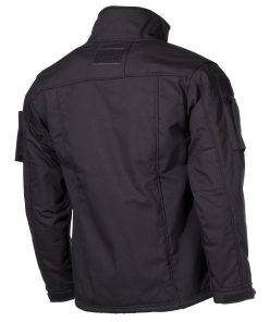 Die Unterseite der Jacke ist aus 4-Wege-elastischem Gewebe, das wasserabweisend ist, die Oberseite der Jacke ist aus 100 % Baumwolle gefertigt.
