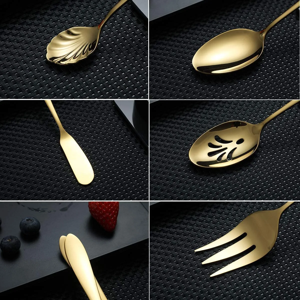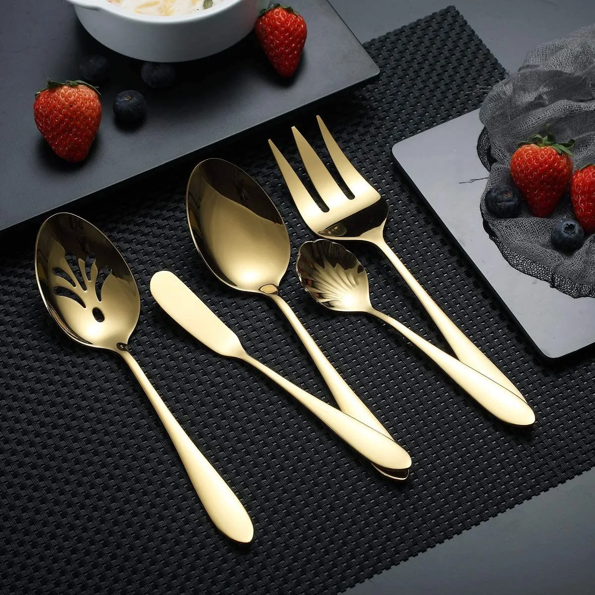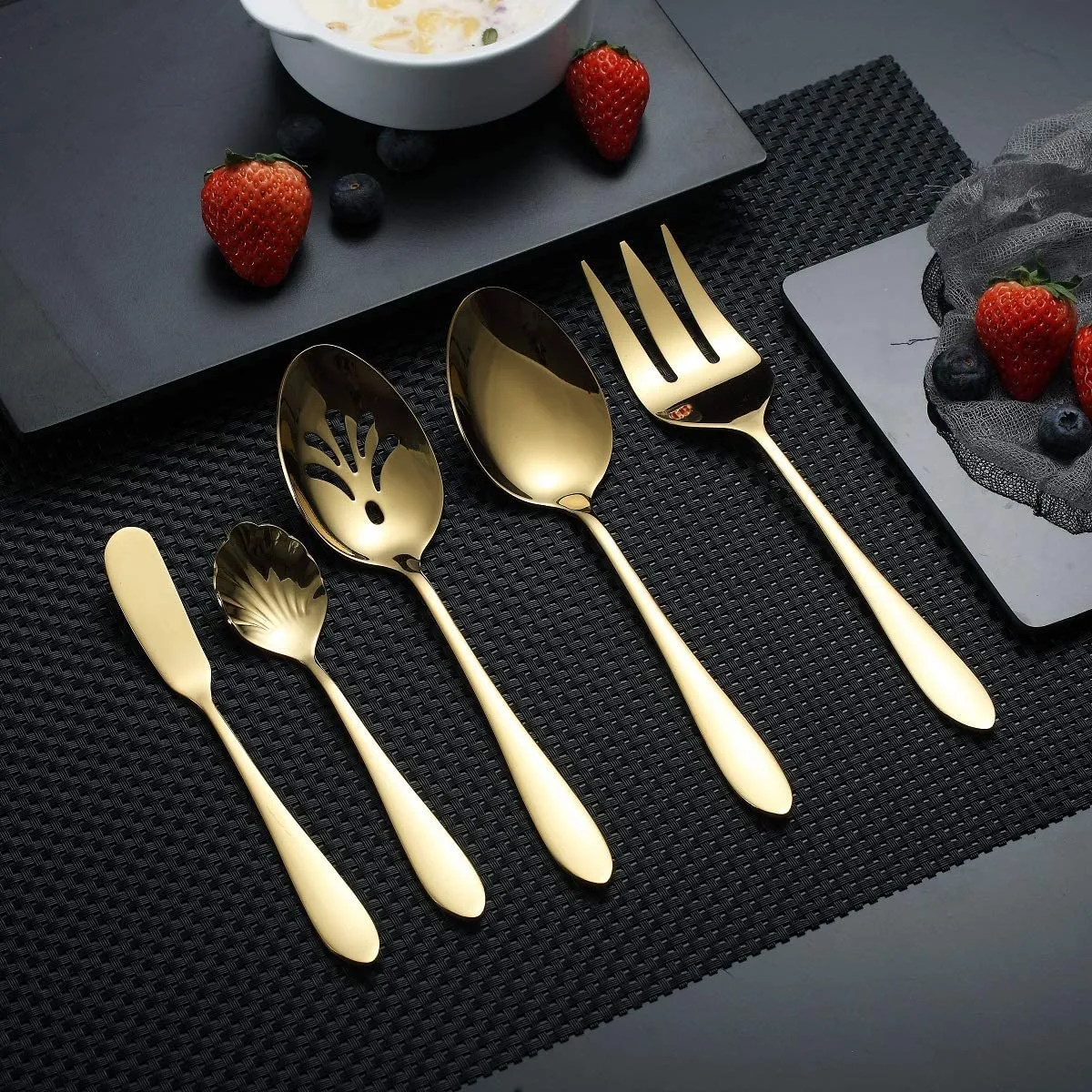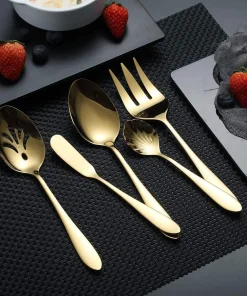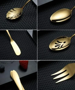 Das Set beinhaltet:Butter messer x1, Zuckerlöffel x1, Fleischgabel x1, Servierlöffel x1, geschlitzter Servierlöffel x1.[/vc_column_text][/vc_column][vc_column width=“1/4″][/vc_column][/vc_row][vc_row][vc_column][vc_empty_space][vc_empty_space][vc_empty_space][/vc_column][/vc_row][vc_row][vc_column width=“1/3″][vc_column_text]