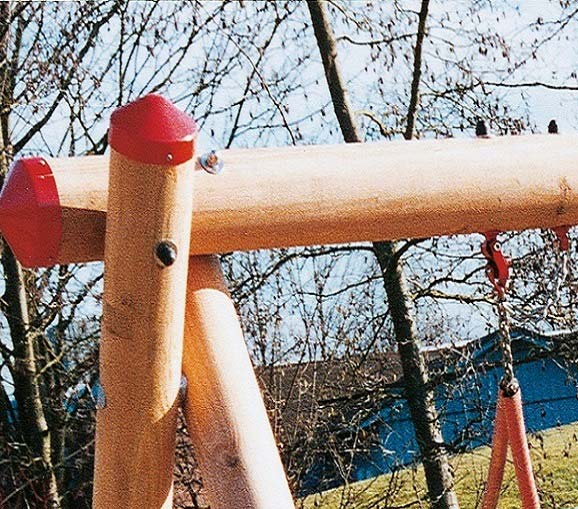 - 1 Kopfbalken aus Douglasie (Ø 180 mm), Länge 4,00 m, mit Kunststoff-Abddeckkappen