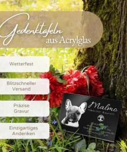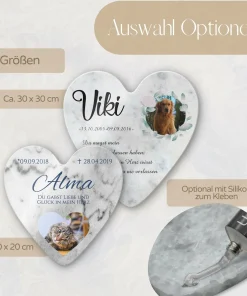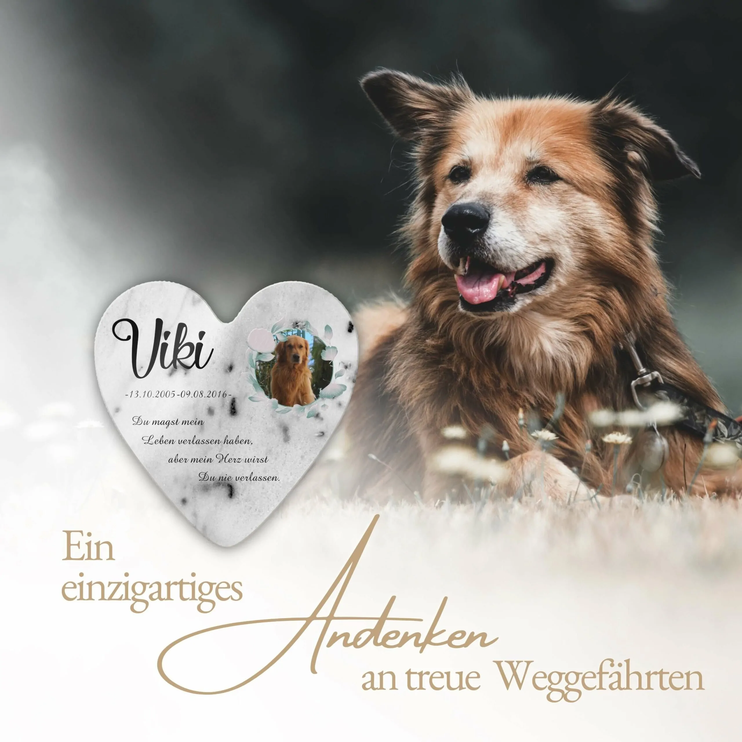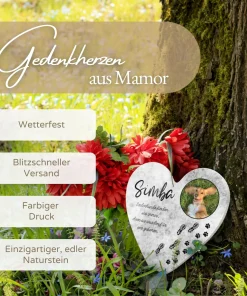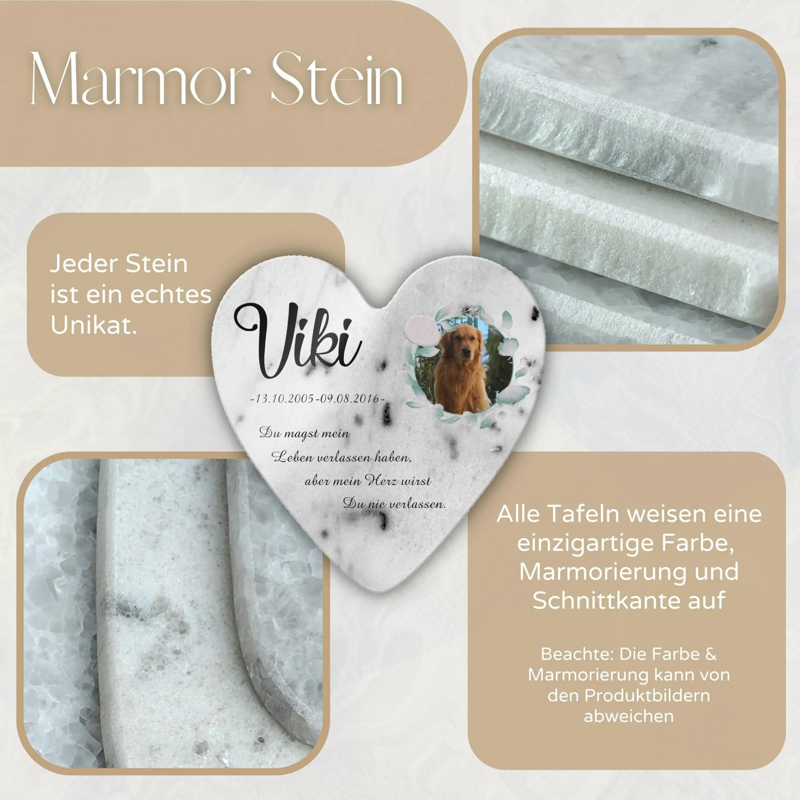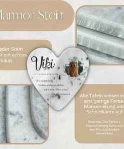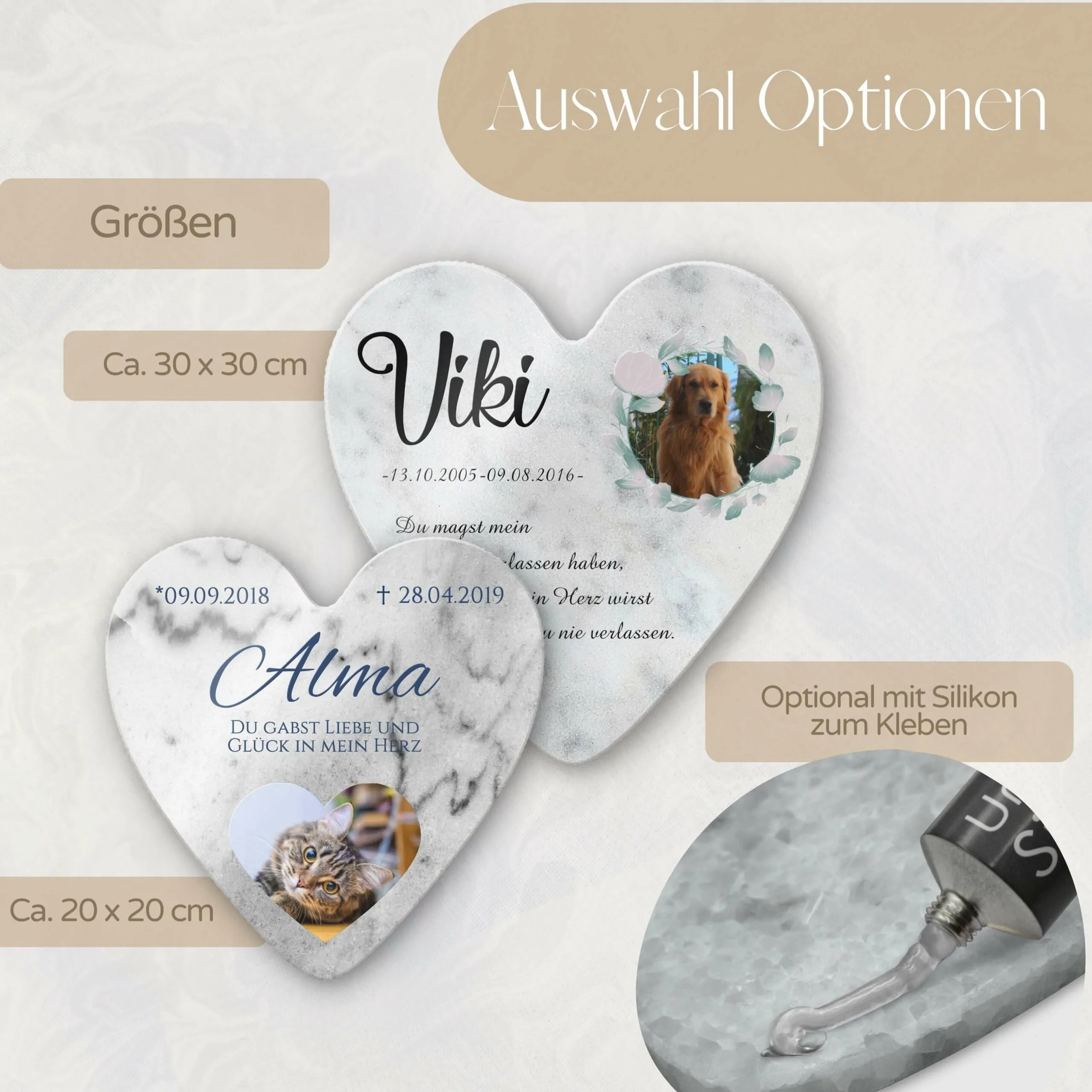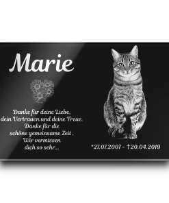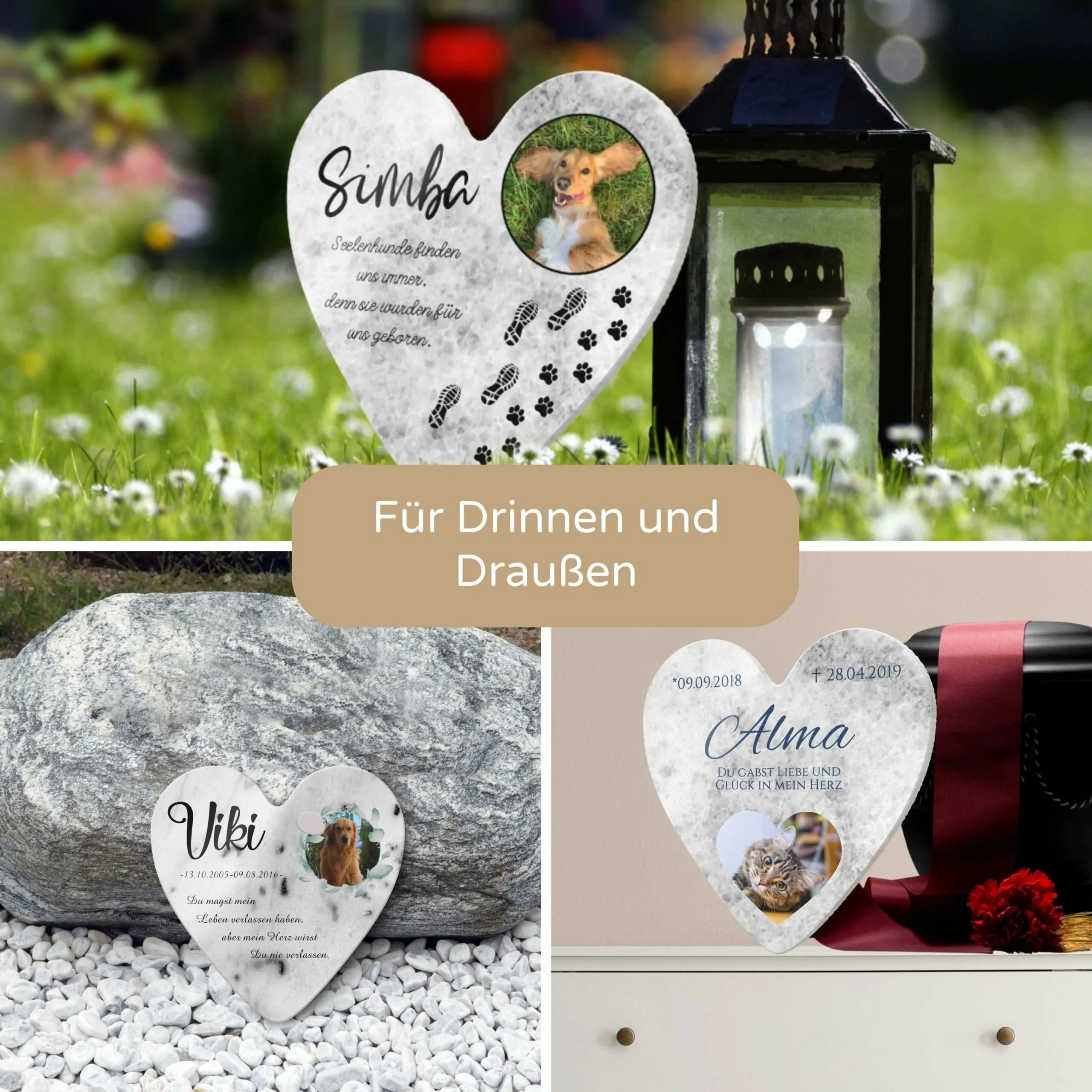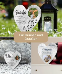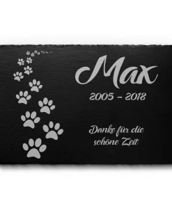 Unsere personalisierten Tier Grabsteine sind ein würdiges Andenken an ein geliebtes Haustier, welches lange Zeit an unserer Seite war. Egal, ob Hund, Katze, Hase, Vogel oder Pferd – jeder verdient ein individuelles und besonderes Gedenken. Unsere hochwertigen Marmor Gedenk Steine sind vielseitig einsetzbar als Erinnerung zum Aufstellen Zuhause, zur Verschönerung neben dem Tiersarg, als Grabdekoration auf dem Tierfriedhof oder als Gedenktafel an einer privaten Gedenkstätte. Sowohl drinnen als auch draußen kann die hochwertige Marmortafel aufgestellt werden.