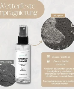 Die Marmor Gedenktafel sollte im Außenbereich generell mit einer Neigung aufgestellt werden, um sicherzustellen, dass Regenwasser problemlos ablaufen kann. Durch die leichte Neigung der Tafel wird verhindert, dass sich Staunässe bildet, was das Risiko von Wasserflecken und Algenbildung minimiert. Diese Konstruktion gewährleistet, dass die Schrift dauerhaft gut leserlich bleibt und nicht durch witterungsbedingte Einflüsse beeinträchtigt wird. So haben Sie auch über Jahre hinweg Freude an Ihrer Gedenktafel.