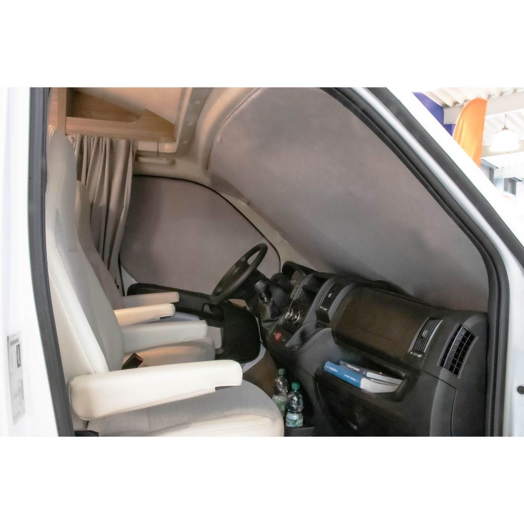 Das 3-teilige Set für Fiat Ducato ab Baujahr 07/2006 bietet wirkungsvollen Schutz vor Kälte und Lärm in wohnlichem Design. Die 8 mm starke Schaumisolierung ist zum Wohnbereich hin mit einem Polyestervelour versehen, der eine angenehme Raumatmosphäre vermittelt. Die Außenfläche ist mit einer aluminisierten Polyesterfolie beschichtet, die Sonnenstrahlen reflektiert und so wirkungsvoll isoliert. Das Luftpolster zwischen Scheibe und Isoliermatte sorgt für zusätzliche Wärmedämmung.