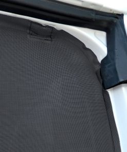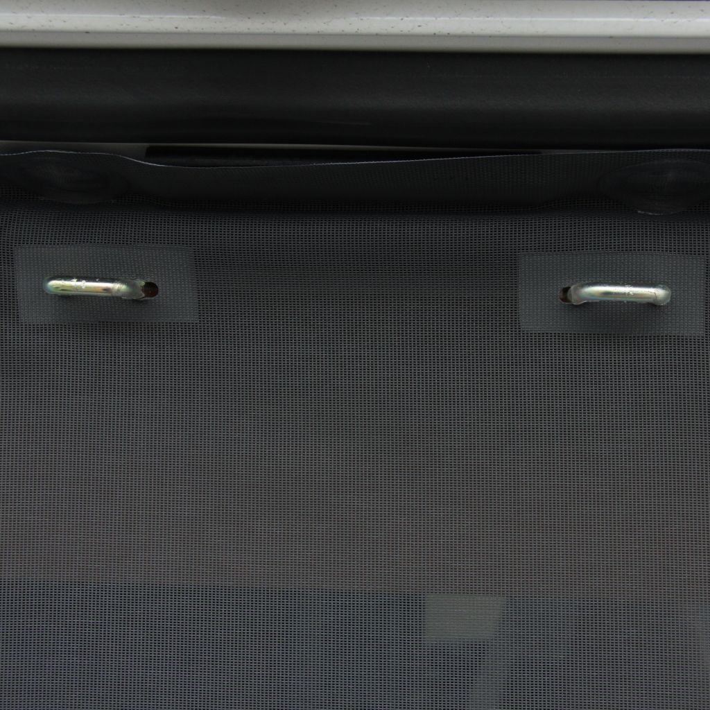Material: Engmaschiges, flammhemmendes Polyestergewebe mit sehr guter Sicht nach außen und guter Luftzirkulation. Es schirmt bis zu 65 % der Sonnenstrahlen ab und reduziert somit die Hitzeentwicklung im Fahrzeug deutlich.
