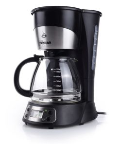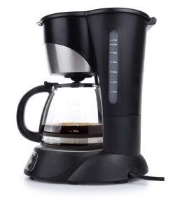 Elegante Kaffeemaschine mit Zeitschaltuhr. Edles Design mit Edelstahl Applikationen, Glaskanne und Warmhalteplatte. Ausstattung: Anti-Tropfsystem, Wasserstandsanzeige, digitale Zeitanzeige, automatisches Abschalten nach 40 Minuten, digitales Bedienfeld, herausnehmbarer Filter, abnehmbarer Behälter, Messlöffel, LCD Display mit Hintergrundbeleuchtung und Kontrolllampe. Für 6 Tassen.