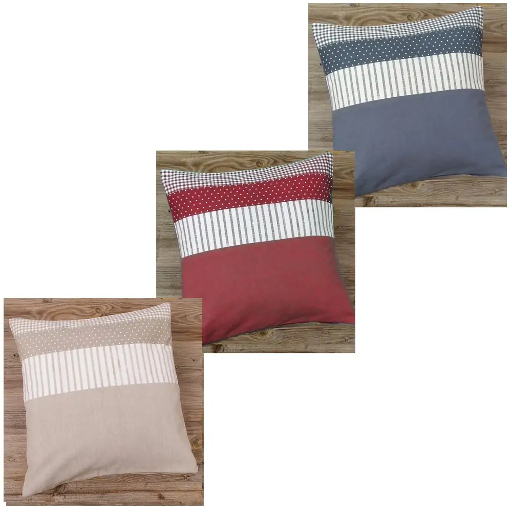 matches21 Kissenhüllen Kissenbezüge Heimtextilien Landhaus Stil LINA uni & Bordüre im Stoffmix 40×40 cm 1 Stk 3 Farben