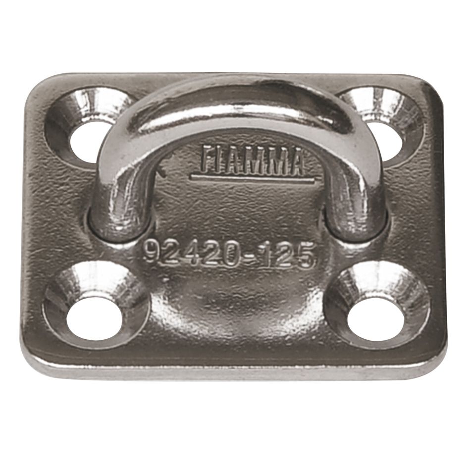 Haken aus Edelstahl zur Befestigung am Boden oder an der Wand, um Riemen oder Gummibänder einzuhängen.