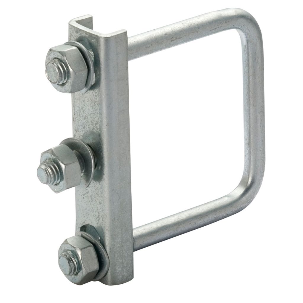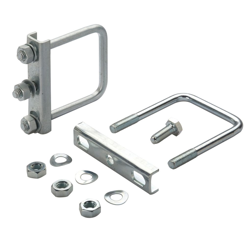 Klemmhalter ø 48 mm verzinkt inklusive Befestigung an ø 70 mm Vierkantrohr.