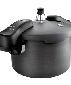Hochwertiges Vielzweck-Kochgeschirr aus Edelstahl mit handlichen Griffen und Deckelknöpfen.