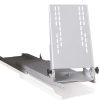 Ermöglicht ein Herausziehen des TFT-Gerätes um 37 cm. Die Monitorhalterung (VESA 75 & 100) ist höhenverstell- und nach vorne neigbar sowie die Trägerplatte schwenkbar. Um das Gerät platzsparend zu verstauen kann der Halter bis zu 90° nach hinten abgeklappt werden. Tragkraft 10 kg, Maße B 26 x T 37,5 cm, Gewicht 3,8 kg.