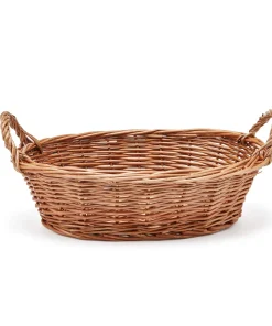 1x pink-weisser karierter Weidenkorb- mit transparenter Geschenkfolie mit Tupfen und pinker Blumeschleife umhüllt. Grösse 30 x 22 x11.5 cm