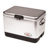 Die PU-Schaum-Isolierung von Korpus und Deckel hält das Kühlgut bis zu 45 Stunden kühl und frisch. Zur weiteren Ausstattung gehören bewegliche Tragegriffe sowie ein auslaufsicheres Ablaufventil. Der Deckel wird durch einen Schnappverschluss sicher verschlossen.