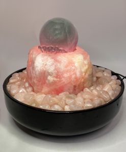 Der Quellstein dieses Brunnenmodells ist aus edlem brasilianischem Rosenquarz gefertigt und trägt eine 12cm große Fluorit-Kugel, die sich rein durch Wasserkraft dreht und für dynamische Bewegung sorgt. Dieser exquisite Zimmerbrunnen setzt in Ihrem Zuhause einen stilvollen Akzent.