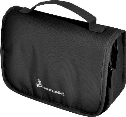 Mit stabiler Öse zum Aufhängen, ausgestattet mit einem großen Hauptfach, 2 Netztaschen und 2 Reißverschlusstaschen im Deckel. Sie wird durch einen umlaufenden Reißverschluss verschlossen. Maße B 28 × T 10 × H 22 cm.
