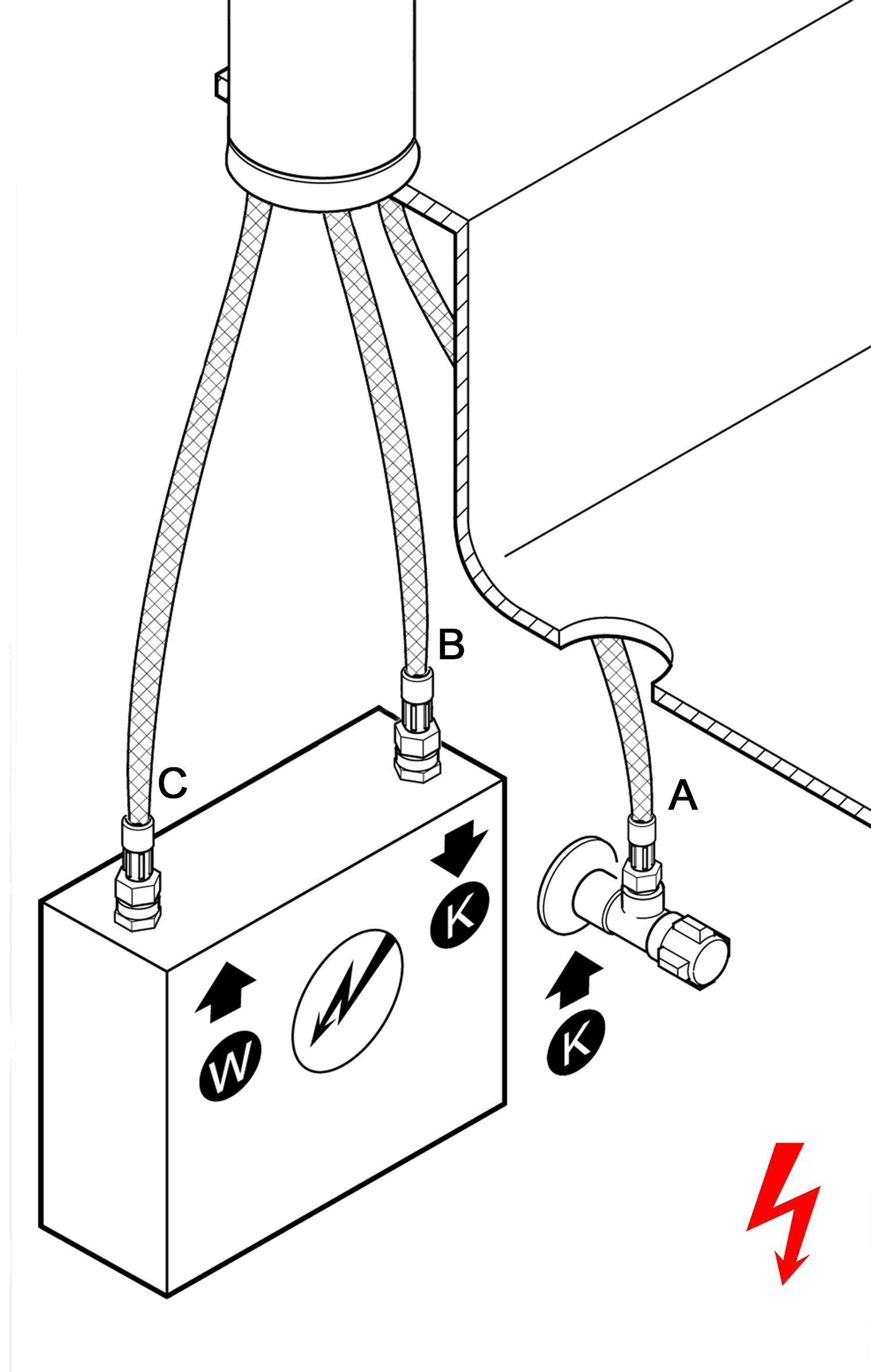 Um Niederdruck Armaturen zu identifizieren, werden diese immer mit ein roten Blitz gekennzeichnet.
