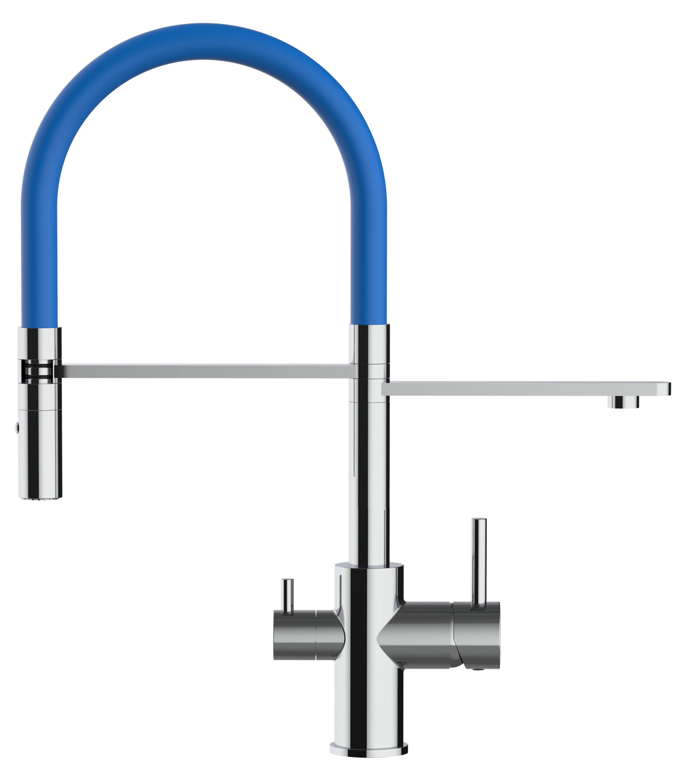 3 Wege Wasserhahn Küchenarmatur Spültischmischer, Verchromt mit 360° schwenkbarem Auslauf und abnehmbare 2 strahl Handbrause – für Kalt-,Warm- und Filterwasser mit separatem Ventil am Hahn und separatem Auslauf für gefilterte Wasserentnahme