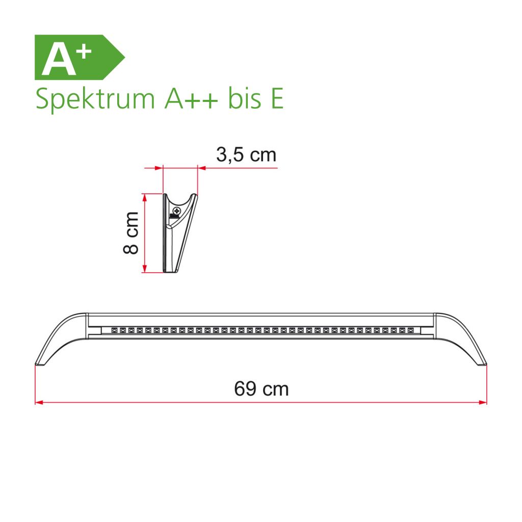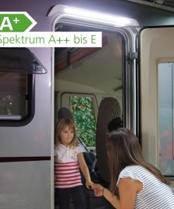 Innovative Version der klassischen LED Awning Light Leuchten für Außen über die Tür von Fiamma. Diese Ausführung hat Endstücke in Form einer Regenrinne sowie eine Aushöhlung in der Mitte. LED Anzahl: 30 Stück.
