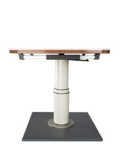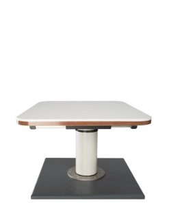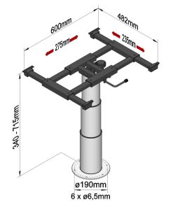 Höhenverstellbar um 37,5 cm. Untere Höhe bis Unterkante Tischplatte 34 cm. Obere Höhe bis Unterkante Tischplatte 71,5 cm. Tischverschiebung mit einer zentralen Verriegelung. Quer- und Längsverschiebung um 23,5 cm und 27,5 cm. Sockelplatte mit 6 Löchern zur Befestigung auf dem Fahrzeugboden. Besonders geeignet für Reisemobile. Als Bettbau nur im eingefahrenen Zustand geeignet. Tischplatte und Montageuntergrund sind nicht im Lieferumfang enthalten.
