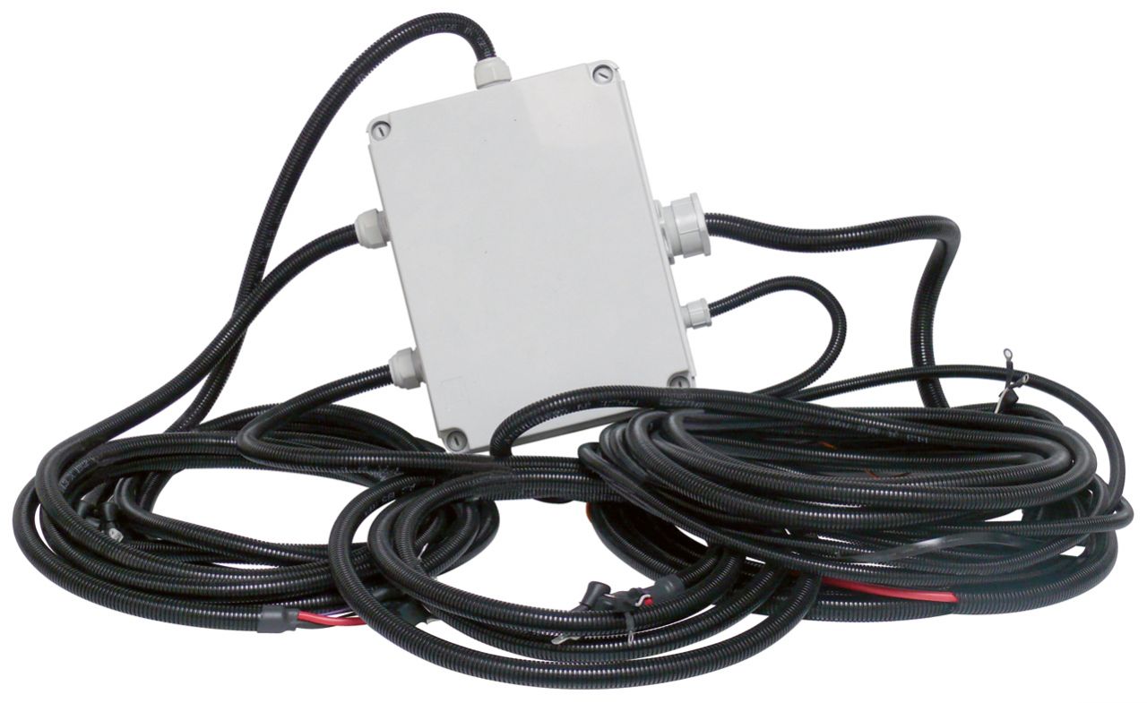 Stützen, vorverkabelte Zentraleinheit, Bedienteil mit Anschlusskabeln, Verlängerungen (2 x 40 mm, 2 x 20 mm, 1 x 10 mm Länge)