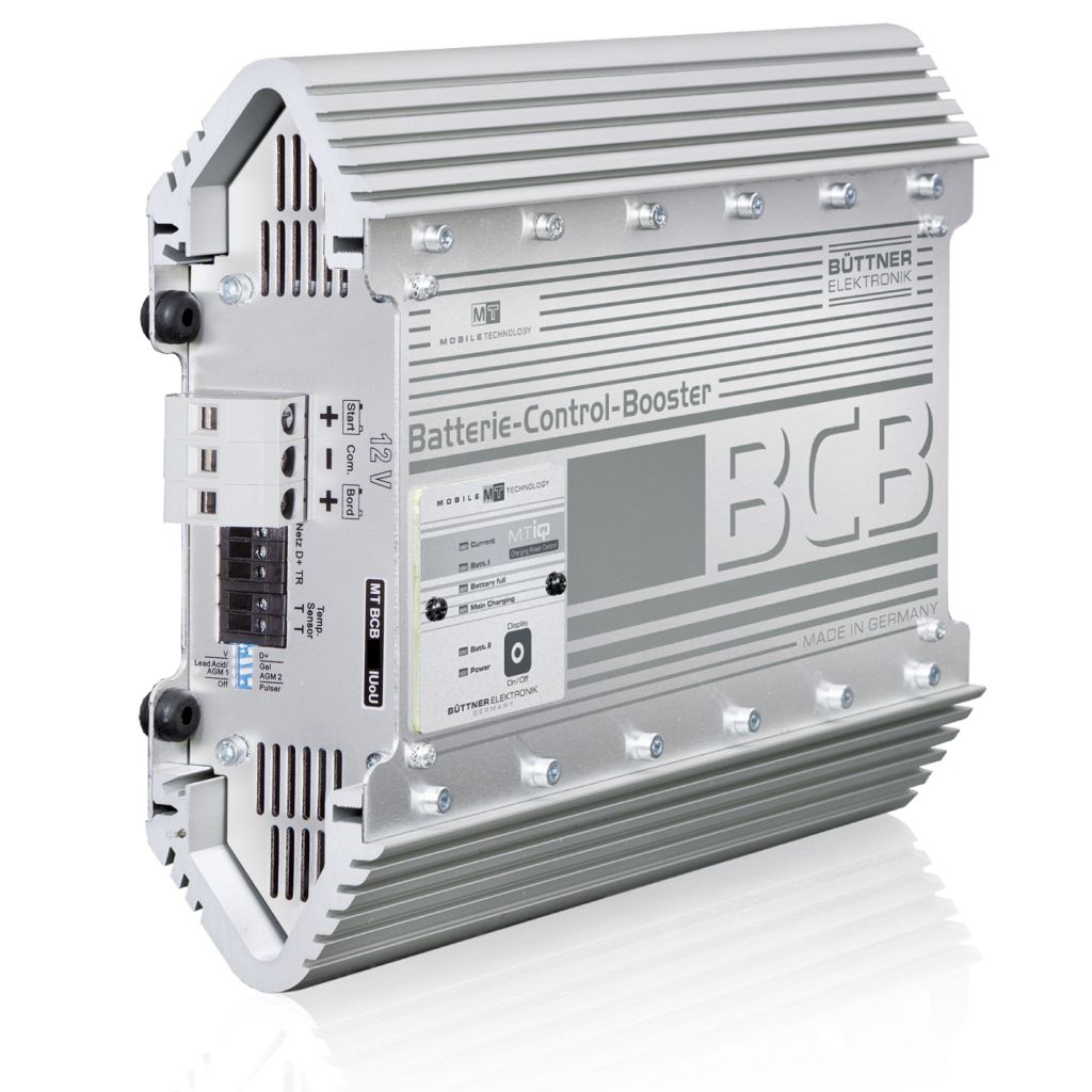 Das Set ist so konzipiert, dass es als eigenständiges System funktioniert aber auch parallel an eine bereits vorhandene Bordelektronik angeschlossen werden kann. Das Set besteht aus einer Lithium-Bord-Batterie MT Li 85; MT Li 95 oder MT Li 110 in Kombination mit einer Ladegerät/Booster-Kombi und einem Batterie-Computer (MT iQ Basic s. Seite 530). Alle Geräte sind von Büttner Elektronik entwickelt und optimal aufeinander abgestimmt. Das Lade/Booster-Kombigerät (BCB 25/20 s. Seite 512) versorgt die Batterie bei vorhandenem 230 V-Netz mit Ladestrom (20 A) und schaltet während der Fahrt automatisch auf Boosterladung (25 A) um. In beiden Ladesituationen erhält das Gerät direkte Informationen von der Lithium-Batterie um diese optimal aufzuladen. Darüber hinaus wird die Batterie vom Batterie-Computer überwacht und dieser zeigt im Innenraum die momentan vorhandene Batteriekapazität (in % und Ah) sowie den Stromverbrauch (A) und die Restlaufzeit an.