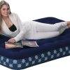 Gefertigt aus strapazierfähigem und gleichzeitig sehr leichtem PVC, die neuartige Laminierung der Oberfläche mit gebürstetem, im Hautkontakt angenehmen Polyester macht dieses Luftbett sehr widerstandsfähig gegen Durchstoßen. Nach Gebrauch kann es entlüftet und einfach in die angenähte Tragetasche eingerollt werden (Wrap‘N‘Roll); Höhe 22 cm.