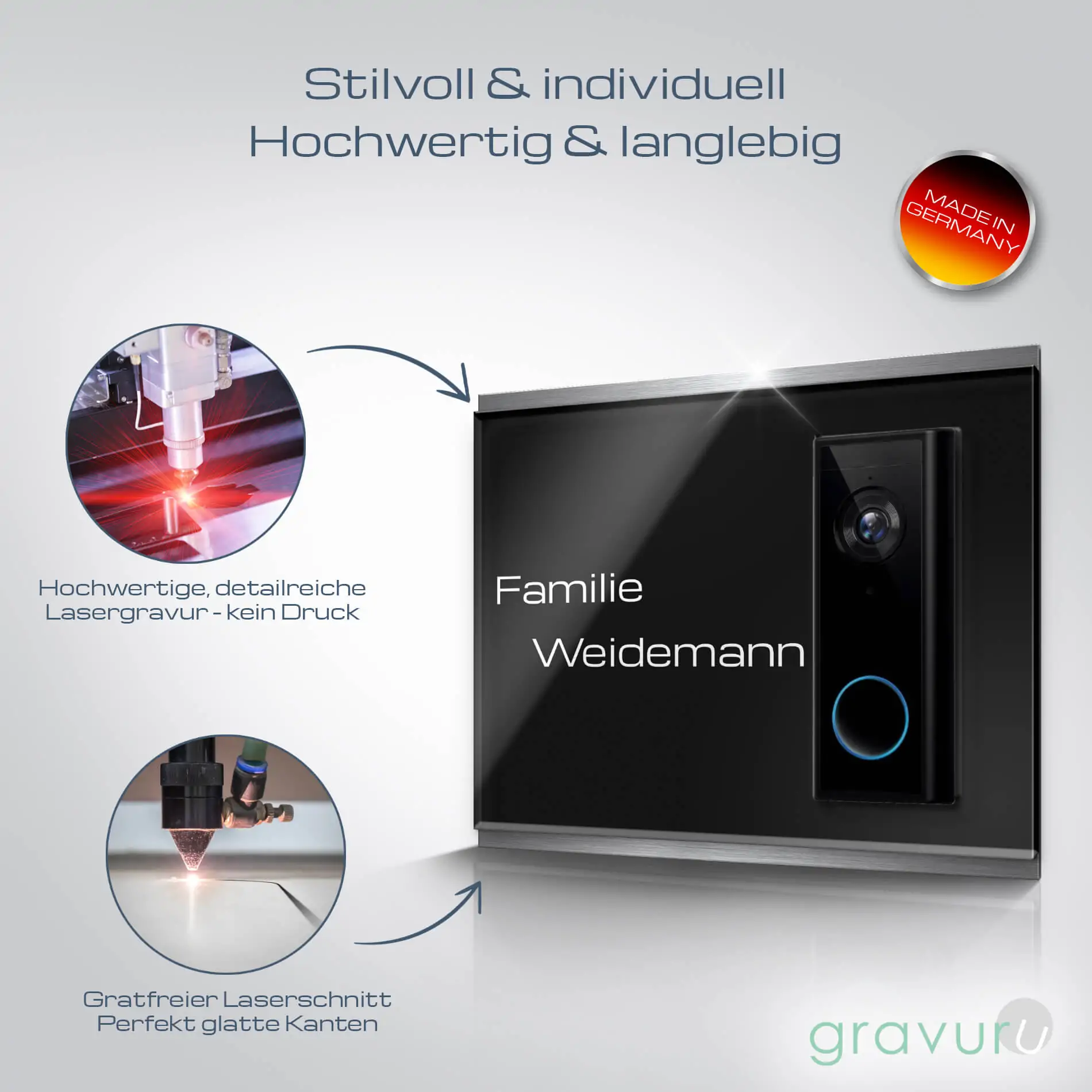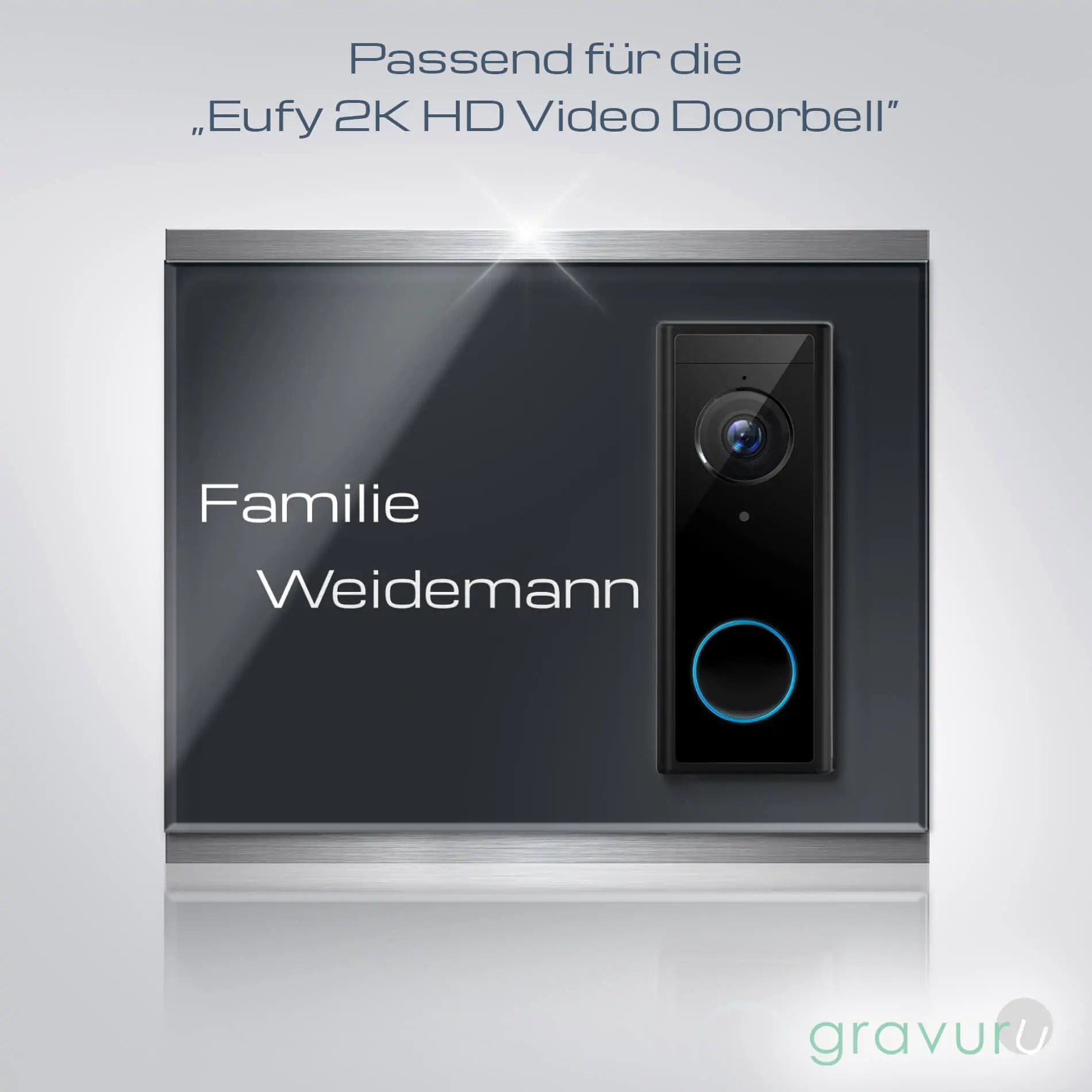 Modernes Tür Schild mit individueller Gravur für die Eufy Video Doorbell 2K Funkklingel