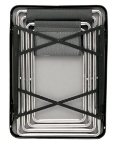 Die moderne Möbelserie von Brunner mit hochbelastbarem Ovalprofil aus Aluminium und atmungsaktivem 3D-Gewebe ist sehr kompakt und leicht zu transportieren.