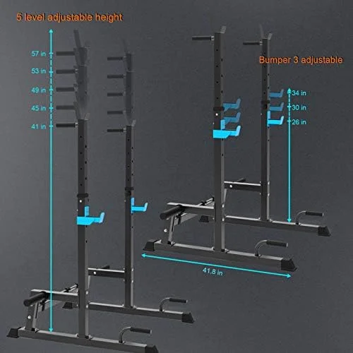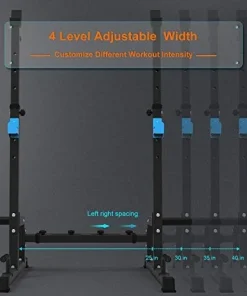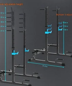 Die Höhe der Halterungen kann auf 66, 76,2 und 86,4 cm eingestellt werden, Benutzer unterschiedlicher Höhen können mit Hilfe von Kniebeugen Training durchführen.